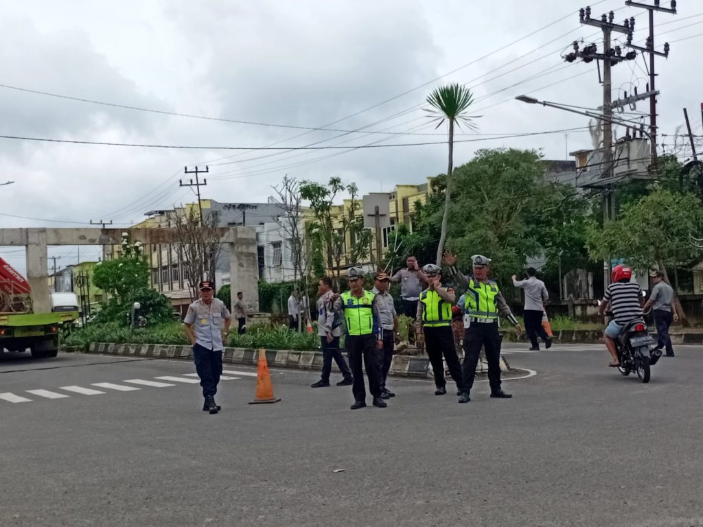 PRABUMULIH, Viapost.id | Dinas Perhubungan (Dishub) Kota Prabumulih bersama Satuan Lalu Lintas (Satlantas) Polres Prabumulih resmi menerapkan penutupan satu jalur lalu lintas di kawasan Tugu Air Mancur, mulai hari ini. Penutupan tersebut merupakan bagian dari rekayasa lalu lintas dalam rangka mendukung proses perbaikan gapura atau gerbang selamat datang Kota Prabumulih.